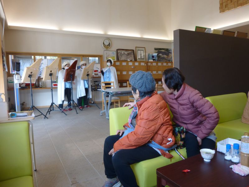 コンサートの予行演習を兼ねて、12/7(日)は、地域の方々がゆったりモーニングを楽しんでいる「なごみサロン」で、クリスマスミニコンサートをおこない、